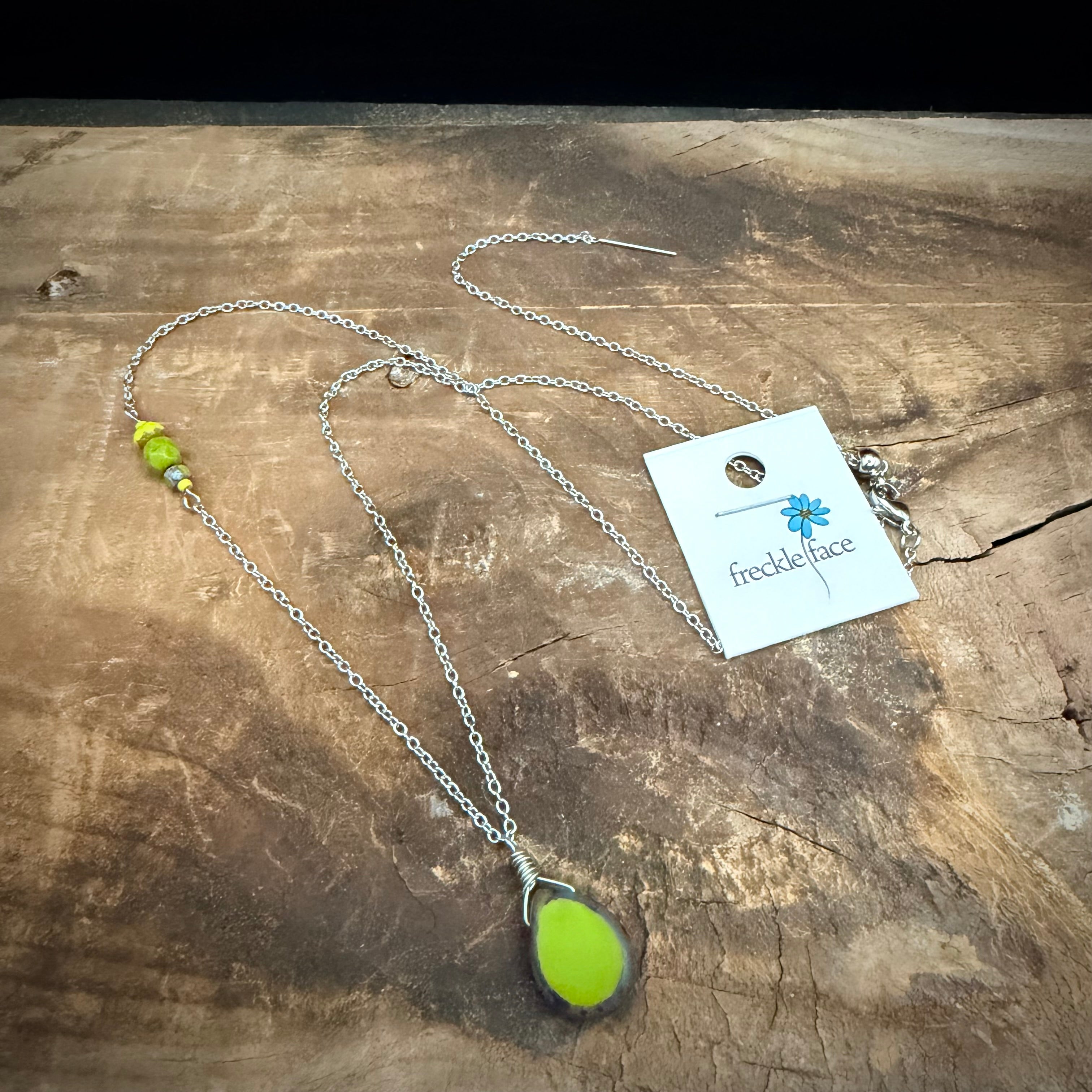 Chartreuse Glow Necklace – Handmade Ceramic Drop on Stainless Steel Chain