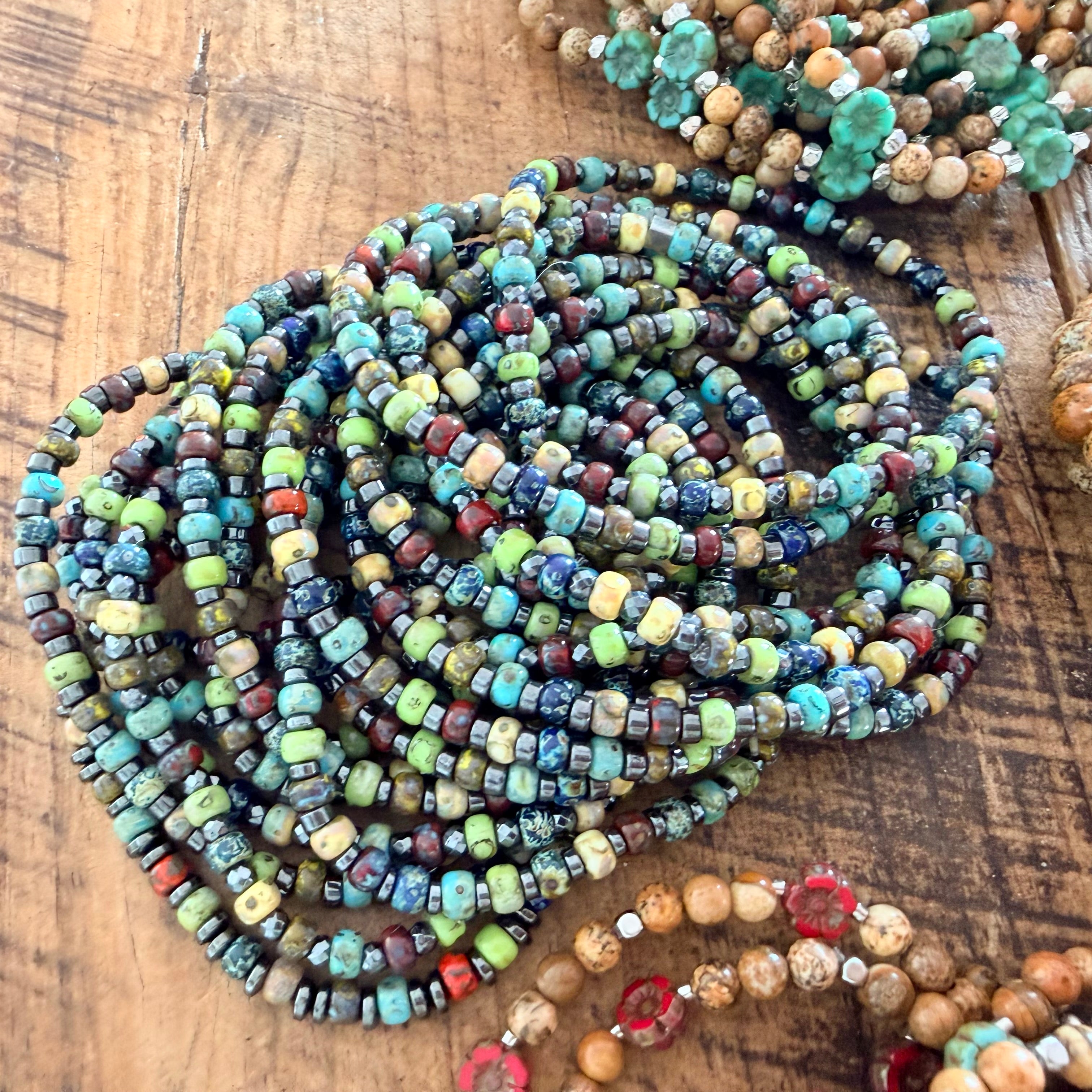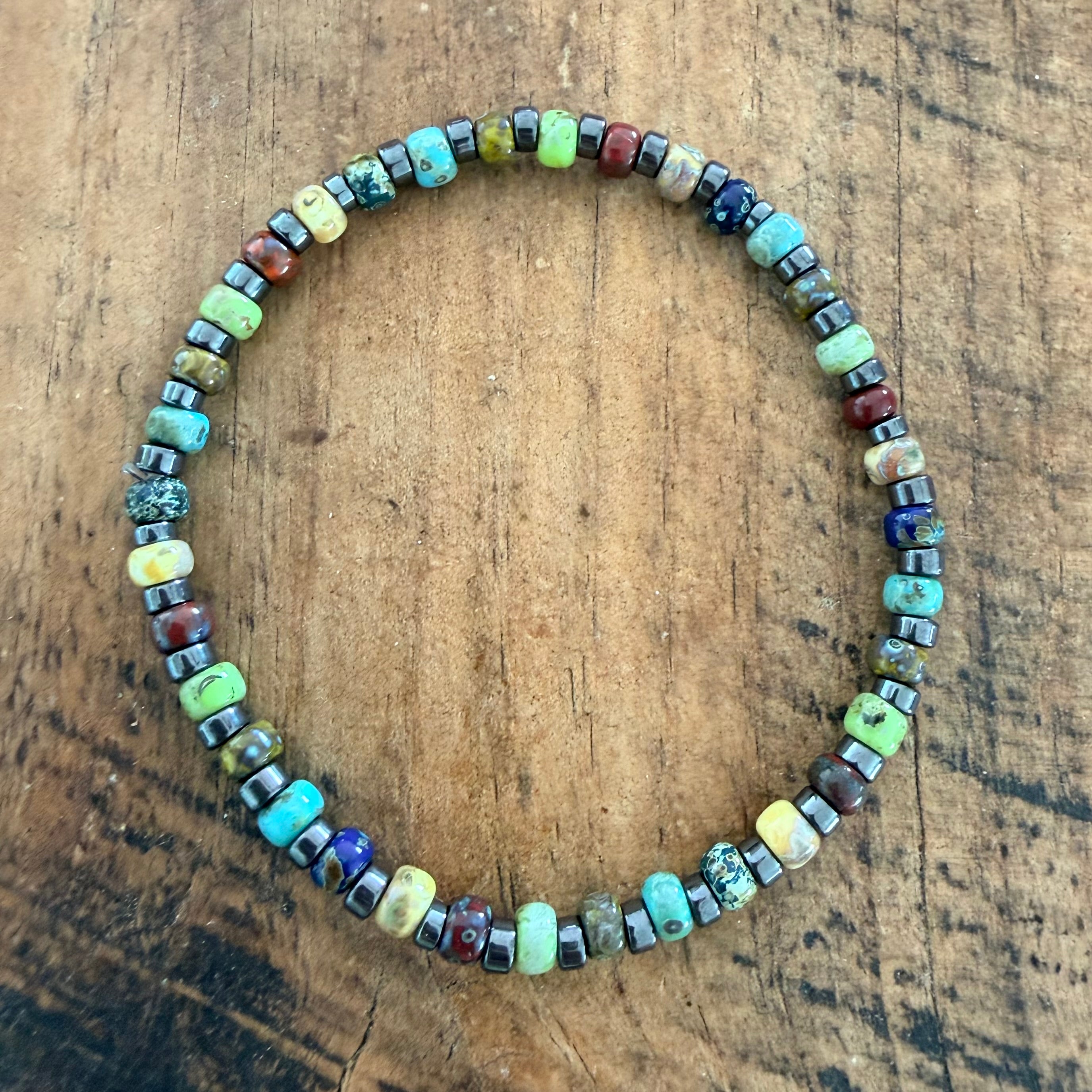 Hematite is traditionally associated with grounding and stability, making this bracelet a thoughtful choice for daily life — whether worn as a quiet reminder or simply as a versatile accessory. The muted blues, greens, browns, and neutrals blend effortlessly, making it perfect on its own or stacked with other bracelets.
