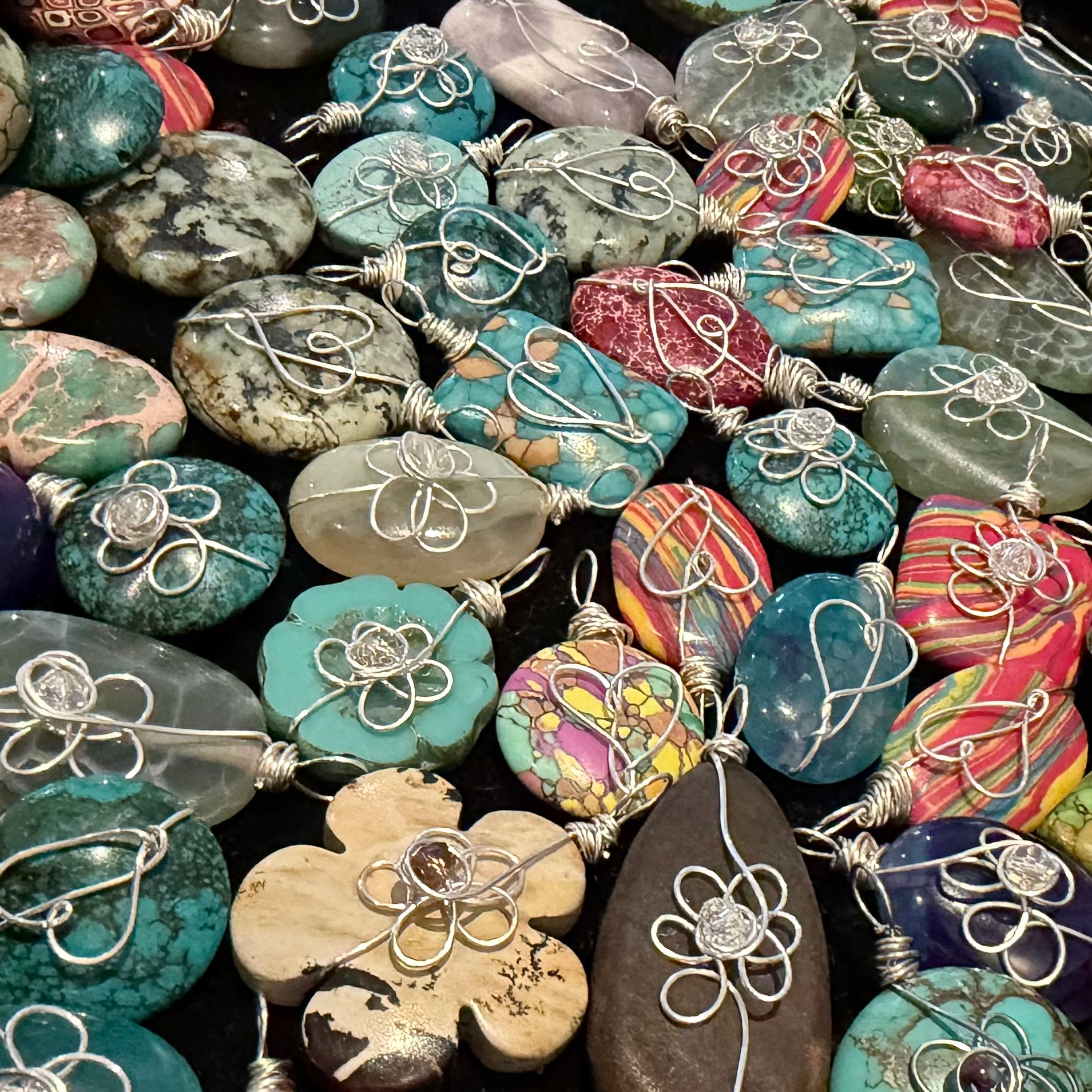 - Hand-wrapped stone pendant