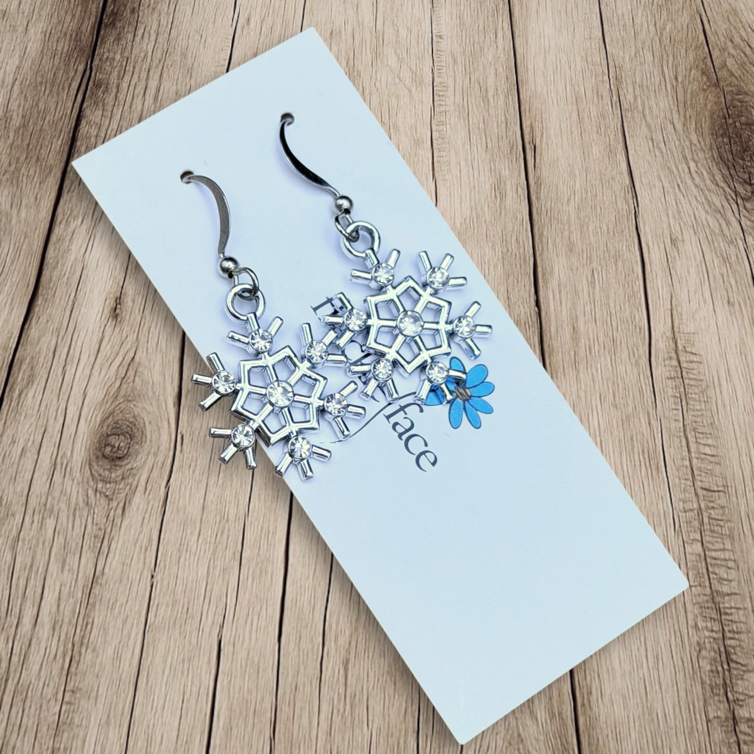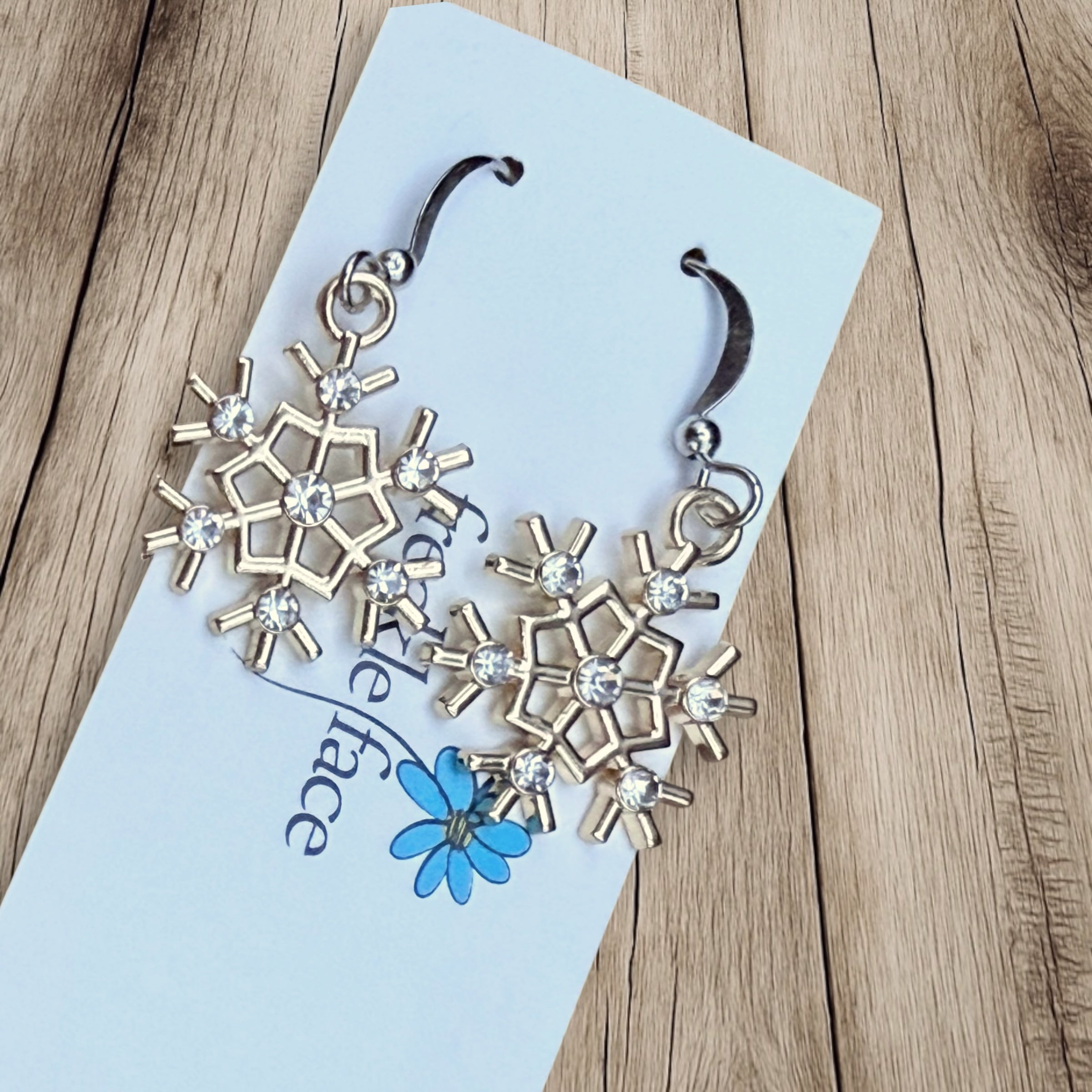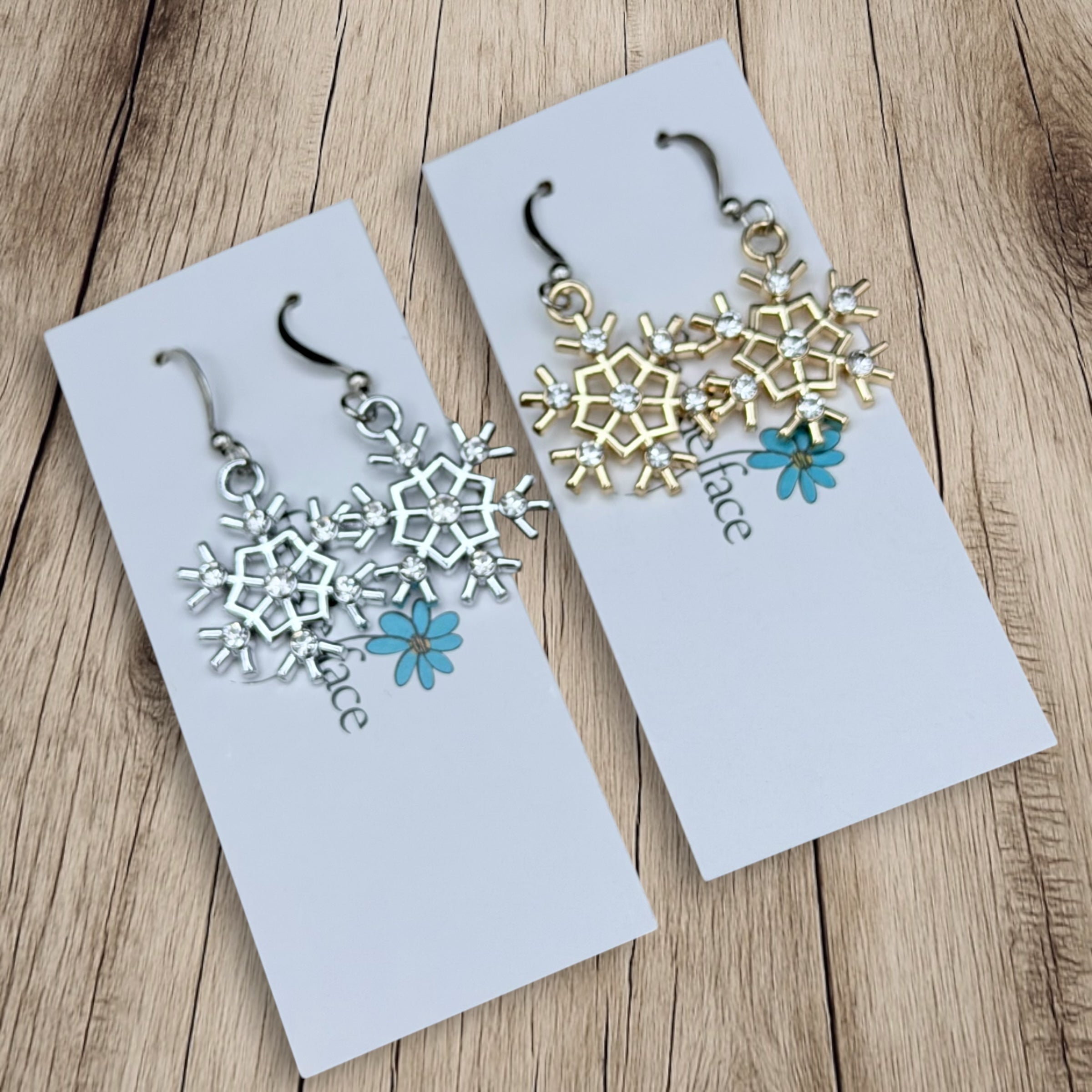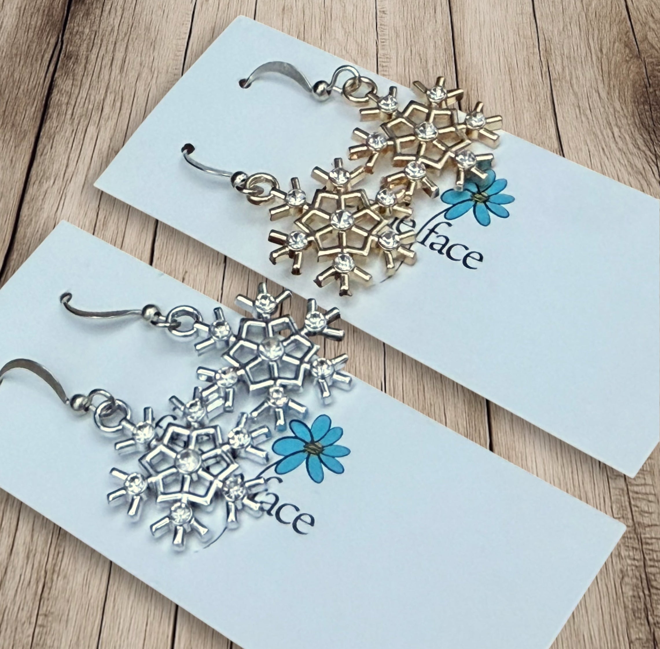 Embrace the magic of winter with these shimmering Snowflake Earrings, available in both silver and gold tones. Each earring features a beautifully detailed snowflake charm accented with clear crystals that catch the light like freshly fallen snow.